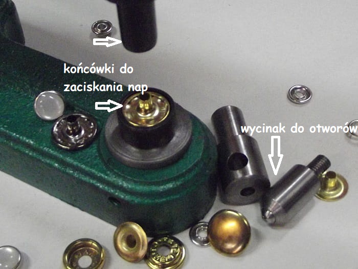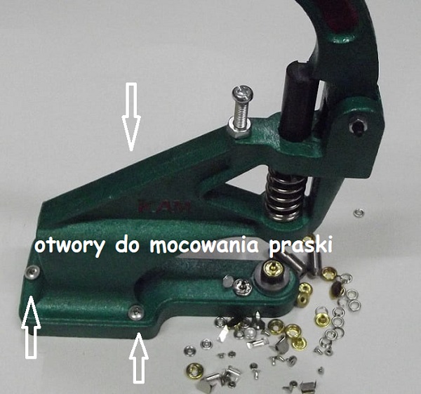 Praska służy do montowania nap, zatrzasków lub do wykonywania otworów. Górny element praski zakończony gwintem natomiast dolna część składa się z otworu o średnicy. Napownica posiada otwory które umożliwiają przymocowanie do blatu.