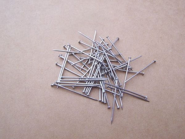 Szpilki stalowe pakowane w tekturowy kartonik. W opakowaniu znajduje się 1kg szpilek.