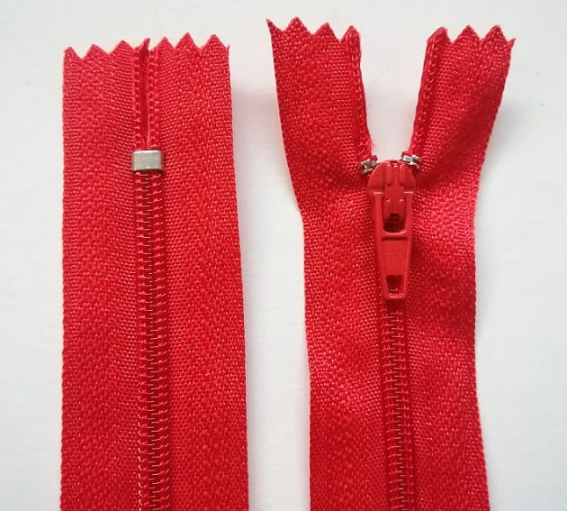 Zamki błyskawiczne 16cm typu kord. Są to wzmocnione nierozdzielcze zamki błyskawiczne, które pakowane są po 50 sztuk. Stosowane najczęściej podczas produkcji spodni, spódnic, wewnętrznych kieszeni odzieży, kurtek, portfeli a także w nogawkach spodni dresowych. Kolor czerwony 8242. Zamki zaopatrzone są w suwak auto-lock zapobiegający samoczynnemu rozpinaniu zamka.