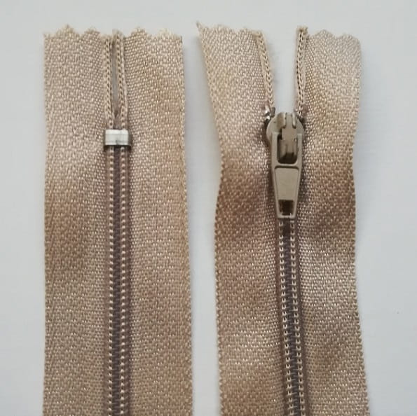 Zamki błyskawiczne 18cm typu kord. Są to wzmocnione nierozdzielcze zamki błyskawiczne, które pakowane są po 100 sztuk. Stosowane najczęściej podczas produkcji spodni, spódnic, wewnętrznych kieszeni odzieży, kurtek, portfeli a także w nogawkach spodni dresowych. Kolor beżowy 334. Zamki zaopatrzone są w suwak auto-lock zapobiegający samoczynnemu rozpinaniu zamka.