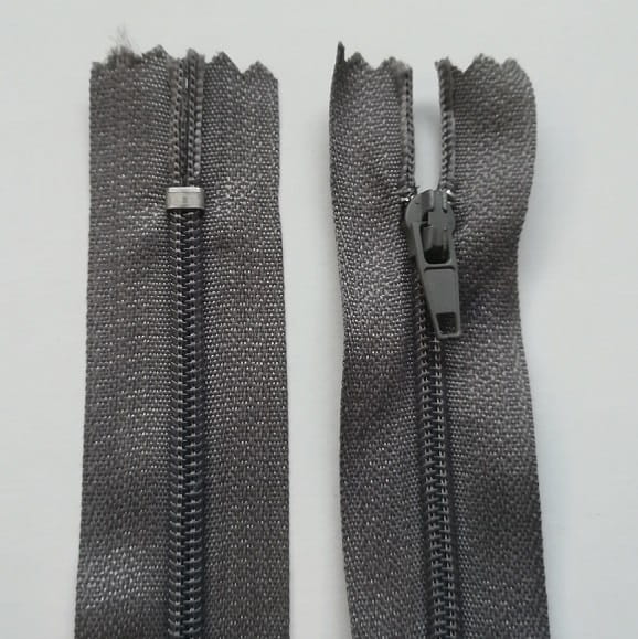 Zamki błyskawiczne 18cm typu kord. Są to wzmocnione nierozdzielcze zamki błyskawiczne, które pakowane są po 100 sztuk. Stosowane najczęściej podczas produkcji spodni, spódnic, wewnętrznych kieszeni odzieży, kurtek, portfeli a także w nogawkach spodni dresowych. Kolor szary 384. Zamki zaopatrzone są w suwak auto-lock zapobiegający samoczynnemu rozpinaniu zamka.